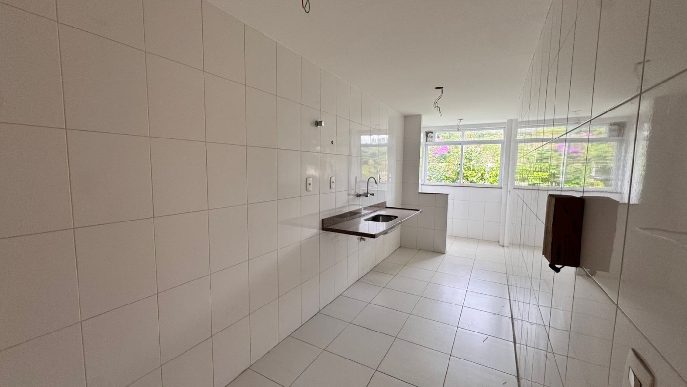 A cozinha é ampla e bem arejada, integrada à área de serviço, trazendo funcionalidade para a rotina da casa.